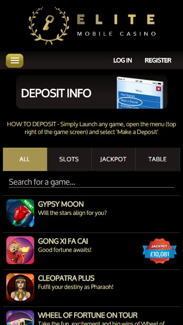 Elite Mobile Casino 由 IGT and Probability提供支持,賭場的遊戲透過基於網路的平台提供,該平台也經營行動網站。Baccarat