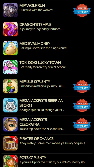 Elite Mobile Casino 提供海量老虎機遊戲,其中包括數十款視訊老虎機和少量經典的三軸老虎機遊戲。所有老虎機均針對小螢幕設計,即使在狹小空間內也能獲得良好的遊戲體驗。Comp Point Program優惠點數⽅案