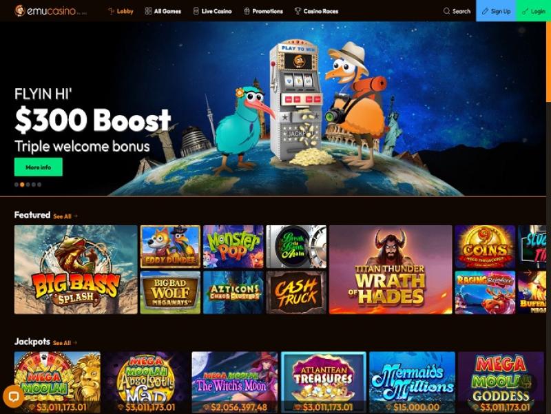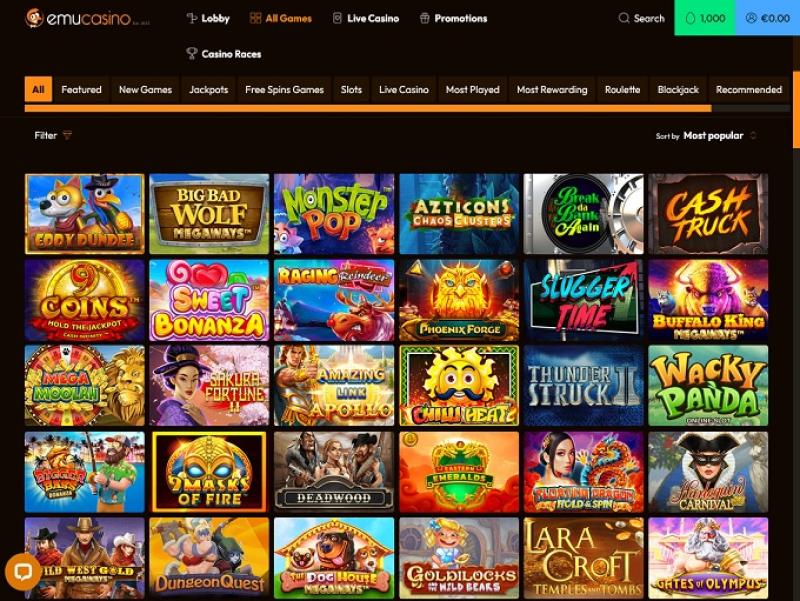 老虎機是 Emu Casino 遊戲庫的主要組成部分,匯集了一系列來自世界頂級開發商的遊戲。 Emu Casino 還提供一系列 iSoftbet 和 IGtech 累積獎金,儘管它缺少其他賭場提供的幾個累積獎金。