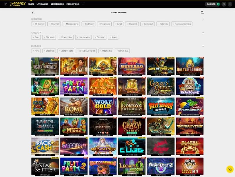 EnergyCasino 由 Microgaming, Net Entertainment, 1x2gaming, Big Time Gaming, ELK Studios, Evolution Gaming, EYECON, Ezugi, Novomatic, Oryx, Play'n GO, playson, Relax Gaming, Thunderkick, Wazdan, Betgames, Booming Games, Stakelogic, Pragmatic Play, Nolimit City, Red Tiger Gaming, Spinomenal, Red Rake Gaming, Fantasma Games, SYNOT Games, Kalamba, Spin Games, Skywind, Spinmatic, Triple Edge Studios, Stormcraft Studios, Switch Studios, Electric Elephant Games, Pocket Games Soft, Bulletproof Games, All41 Studios, Gluck Games, Gameburger Studios, Slot Factory, Neon Valley Studios, Swintt, SpinPlay Games, HungryBear Gaming, Blue Guru Games, On Air Entertainment, Holle Games, Buck Stakes Entertainment, Games Global, Wizard Games, 2by2 Gaming, Ainsworth, bluberi, Blueprint Gaming, GamesOS, Greentube, Leander Games, Merkur Gaming, Pariplay, Gamomat, Reel Time Gaming, BF Games, Bally Wulff, Iron Dog Studio, Foxium, Just For The Win, Storm Gaming Technology, PearFiction Studios, Wild Streak Gaming, Slingshot Studios, Golden Hero, Fortune Factory Studios, Jade Rabbit Gaming, Green Jade Games, STHLM Gaming, RubyPlay, 4ThePlayer, Gamevy, Crazy Tooth Studio, NetGaming, High 5 Games, Japan Technicals Games, Alchemy Gaming, Black Pudding Games, Snowborn Games, Hacksaw Gaming, Max Win Gaming, Gold Coin Studios, Half Pixel Studios, Slotmill, SilverBack Gaming, Peter And Sons, Lucksome Gaming, Area Vegas, RAW iGaming, Leap Gaming, LiveG24, Atomic Slot Lab, Indigo Magic and Sneaky Slots提供支持,擁有豐富的賭場遊戲庫。 EnergyCasino 提供網頁版平台,玩家可透過網頁瀏覽器進行遊戲。此外,我們也提供行動網站,方便隨時隨地暢玩。Baccarat