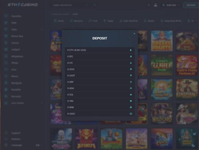 ETH Casino 是一家主要針對德國、加拿大和紐西蘭玩家的線上賭場,但由於它支援 VPN ,因此所有博彩管轄區的玩家都可在此暢玩。賭場平台提供多種語言的在地化版本,包括英語、德語、俄語、挪威語、西班牙語和葡萄牙語。請注意,在撰寫本文時,該品牌尚未獲得博彩牌照。