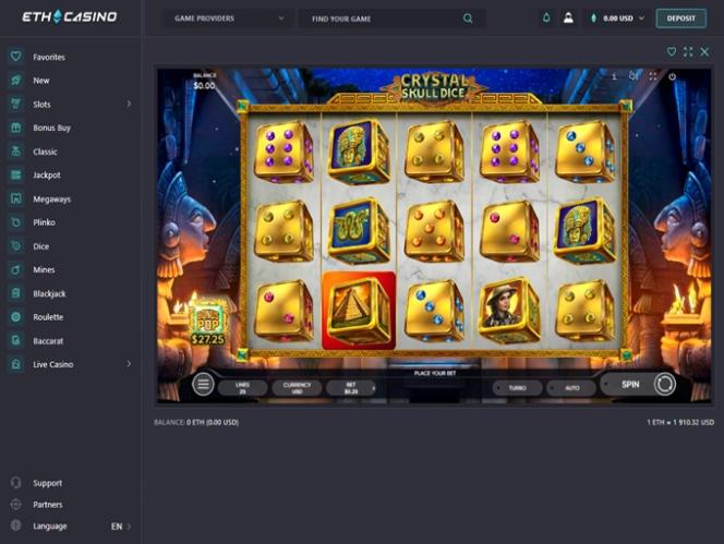 ETH 賭場是一家僅使用加密貨幣的賭場,它接受流行的數位貨幣,如以太坊、比特幣......該賭場擁有即時提款、無需驗證程序等優勢,對於尋求無憂遊戲體驗的賭場玩家來說,這是一個絕佳的選擇。