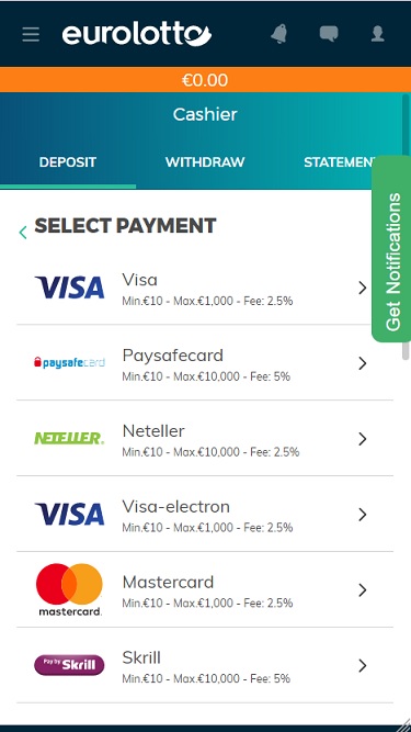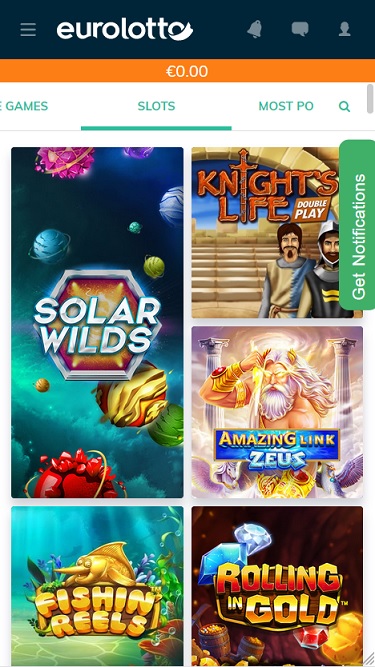 EuroLotto Casino 由 Microgaming, Net Entertainment, BetSoft, Barcrest, Big Time Gaming, ELK Studios, Evolution Gaming, iSoftBet, Oryx, Play'n GO, Thunderkick, Yggdrasil, Pragmatic Play, Nolimit City, Red Tiger Gaming, Fantasma Games, Kalamba, Triple Edge Studios, Northern Lights Gaming, All41 Studios, TrueLab Games, SpinPlay Games, Games Global, 2by2 Gaming, Bally Technologies, Blueprint Gaming, NYX Interactive, SG Interactive, Gamomat, Slingshot Studios, Golden Hero, Fortune Factory Studios, Gamevy, Crazy Tooth Studio and Half Pixel Studios提供支持,其賭場遊戲透過網路為基礎的平台提供,您可以透過網路瀏覽器進行遊戲。