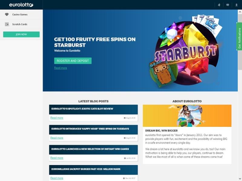 EuroLotto 賭場是一個線上博彩網站,由 EuroSlots Limited 於 2011 年創立。該網站專注於彩票、賓果遊戲和基諾遊戲,同時也提供一系列賭場遊戲。該網站以提供豐富的遊戲庫和及時派彩而聞名,這使得 EuroLotto 成為一個絕佳的博彩平台。
