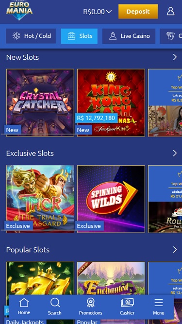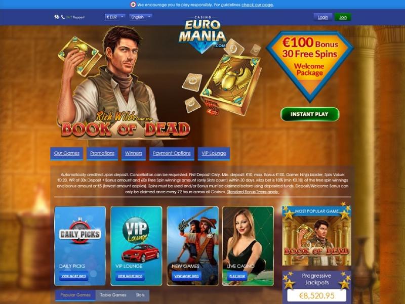 EuroMania 提供數百款老虎機遊戲,其中包括來自世界頂級開發商的各種經典老虎機和視訊老虎機。此外,還有數百萬美元的累積獎金等著您贏取,例如 Mega Moolah、Major Millions 等大獎。