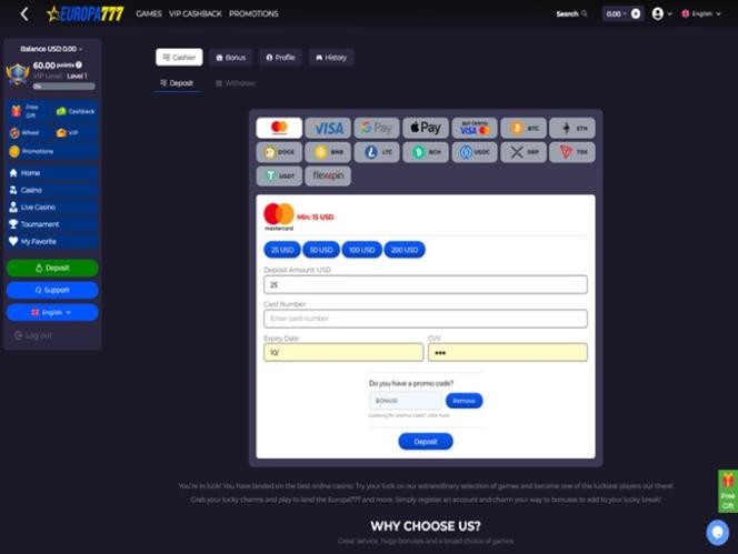 請記住,在領取任何促銷活動之前,最好花點時間閱讀一下獎金條款和條件。了解獎金規則不僅能幫助您最大化獎勵,還能讓您在 Europa777 的時光更加愉快和難忘。
