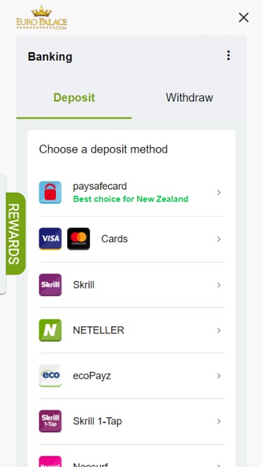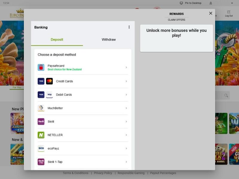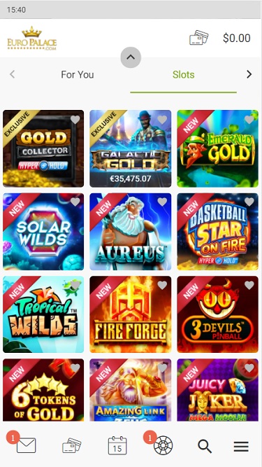 Euro Palace 賭場由 Microgaming, Evolution Gaming, Rabcat, Pragmatic Play, Triple Edge Studios, Northern Lights Gaming, Stormcraft Studios, Switch Studios, Electric Elephant Games, All41 Studios, Gameburger Studios, Pulse 8 Studios, Neon Valley Studios, SpinPlay Games, Real Dealer Studios, GONG Gaming, On Air Entertainment, Buck Stakes Entertainment, Games Global, Old Skool Studios, Foxium, Just For The Win, PearFiction Studios, Slingshot Studios, Fortune Factory Studios, Crazy Tooth Studio, Alchemy Gaming, Snowborn Games, Gold Coin Studios, Half Pixel Studios, Eurostar Studios, Aurum Signature Studios and Area Vegas提供支持,提供數百種不同的賭場遊戲以及一個可靠的遊戲平台。玩家可以透過 Euro Palace 的網站或下載的軟體存取賭場,該軟體將賭場用戶端直接安裝在您的電腦上。這兩個平台幾乎完全相同,選擇其中一個平台並沒有太大差異。此外,我們也提供行動賭場,方便玩家在電腦或行動裝置上暢玩。