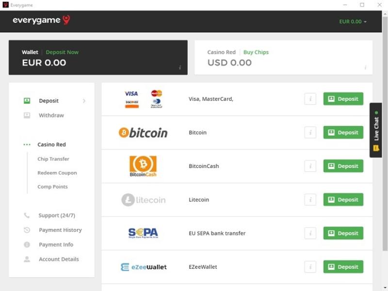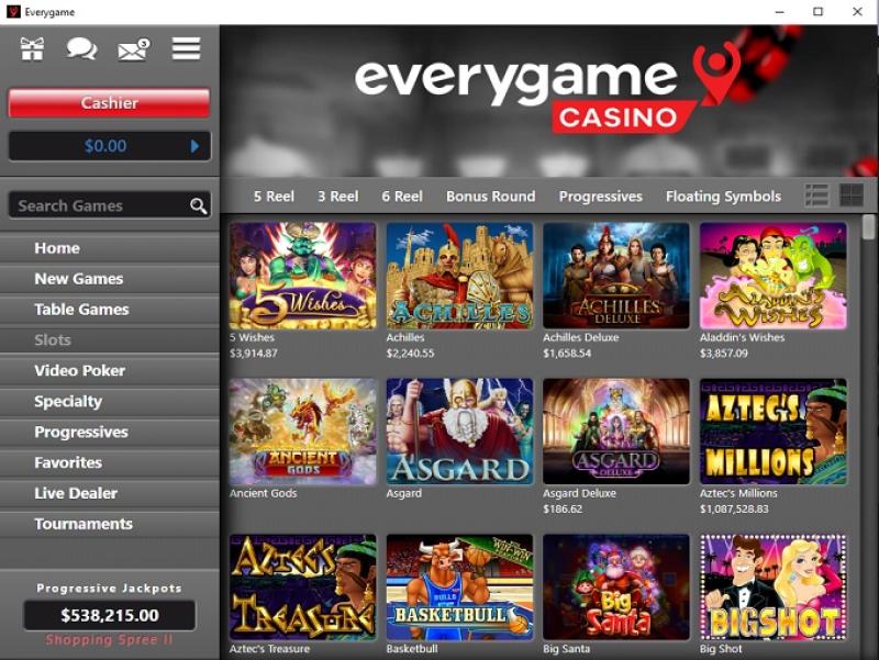 Everygame Casino 提供將整個賭場內容直接下載到玩家的電腦上,並且所有遊戲都可以在演示模式下玩。