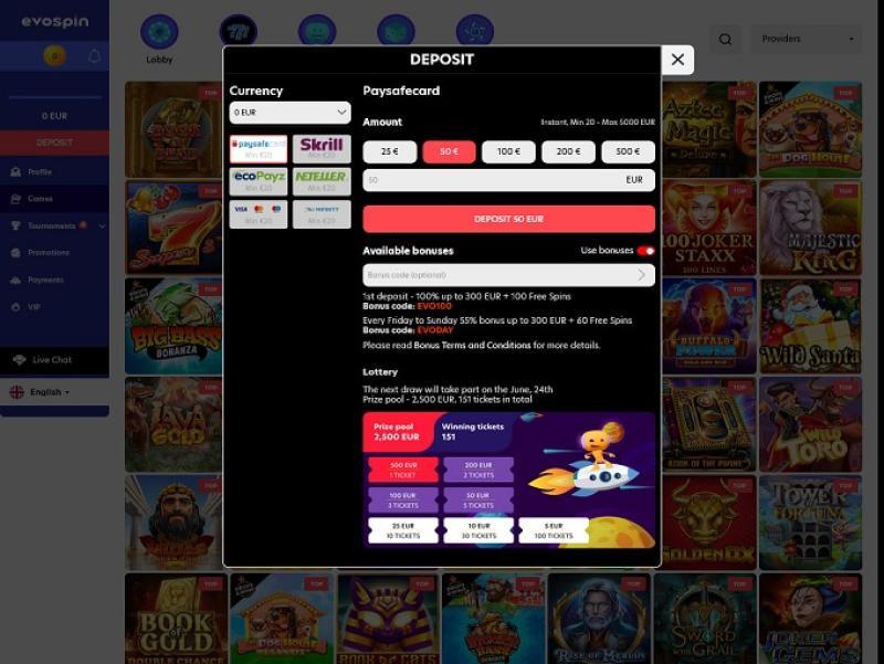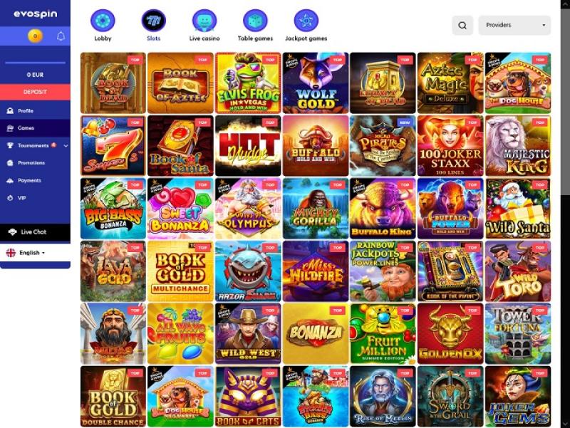 Evospin 由許多頂級供應商提供支援:Microgaming、 NetEnt 、Evolution Gaming、BetSoft、Pragmatic Play、 Play n' Go 、BTG、Quickspin、ELK、Red Tiger、Thunderkick、Rabcat、Lightning Box、Playson、1x2 Gaming、iSoftBet、JFT、Boom、Lightning Box、Playson、1x2 Gaming、iSoftBet、JFTC、Foom Games、Iox、Foom Games、Ioxin、Foom Games、JFT、Foom Games、Iox、Foom Games、Iox、Foom Games、JFT1 Gaming、Triple Edge Studios、Tom Horn、Push Gaming、Genesis Gaming、Fantasma Games、Kalamba、Gamburger Studios、All41 Studios、Stormcraft Studios、WMS、Fortune Factory Studios、 Playtech 、Slingshot Studios、Amatic、Realistic Games、Crazy Studios Tooth Studio、Half Pake Studio、Haj燒Gaming、Fugaso、TrueLab Games、Switch Studios、Golden Rock Studios、Ainsworth、Eurostar Studios Northern Lights Gaming、Bally Technologies、 Softswiss 、BGAMING、Old Skool Studios、Gamevy、Barcrest、Hacksaw Gaming、Pocket Games Soft、SilverBack Games、Shuffle Master、Red7 Mobile、Novomatic、Ash Gaming、Sigma Gaming、Wild Streak Gaming、Aurum Signature Studios、Swintt、Greentube、Plank Gaming、Rarestone Gaming、Gaming1。