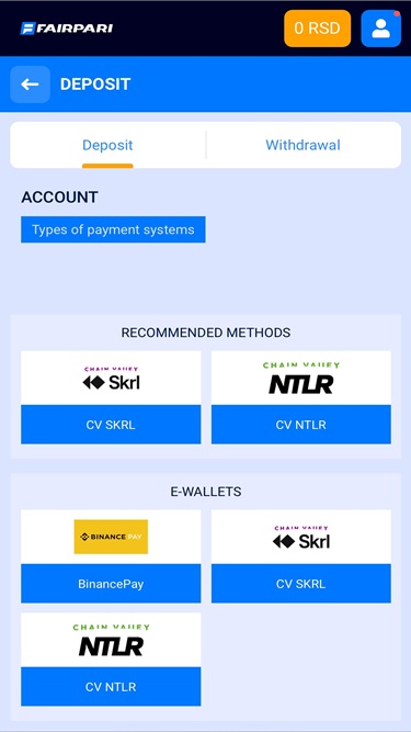 Fairpari Casino 提供多種支付方式,例如 Polkadot、Dash、Skrill、Netteler、Visa 和MasterCard等等,以及許多加密貨幣選項,例如比特幣、比特幣現金、卡爾達諾、狗狗幣、以太坊、萊特幣、瑞波幣、Solana、Tether、Ton、Tron、USD Coin 和 Zcash。