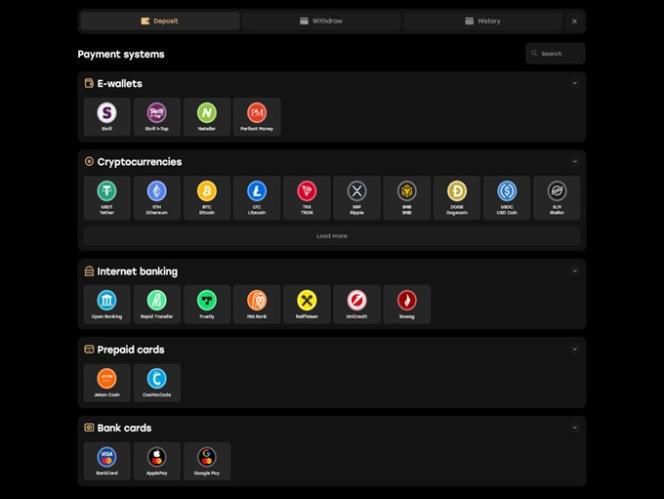 這是一個遊戲網站,正如我們已經提到的,它提供各種加密貨幣支付選項用於存款和提款,還提供其他值得信賴和流行的銀行方式,例如支付卡和電子錢包。