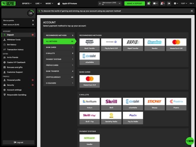 乍一看,Fansport Casino 主要專注於為玩家提供體育博彩選擇。但仔細觀察後,您會發現該品牌擁有豐富的線上老虎機、真人荷官、桌上遊戲、速成遊戲和其他線上賭場活動。豐富的娛樂選擇與豐厚的促銷計劃相得益彰,其中包含各種獎金。該賭場接受加密貨幣和傳統銀行方式,因此您可以透過多種方式存款和提款。