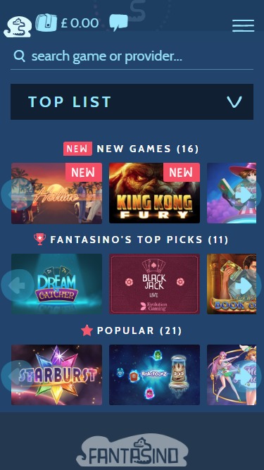 Fantasino 由 Microgaming, Net Entertainment, Evolution Gaming, Habanero Systems, iSoftBet, playson, Quickspin, Yggdrasil, Wazdan, Booming Games, Stakelogic, Pragmatic Play, Nolimit City, IGT, Red Rake Gaming, Spearhead Studios, HungryBear Gaming, Games Global, EveryMatrix, Media Live, NYX Interactive, Genii, Aurify Gaming, BB Games and Armadillo Studios提供支持,賭場遊戲透過基於網頁的即時遊戲平台提供,可透過您常用的瀏覽器直接載入。賭場還全面支援行動裝置遊戲,這意味著您可以透過智慧型手機或平板電腦加載遊戲,隨時隨地暢玩。