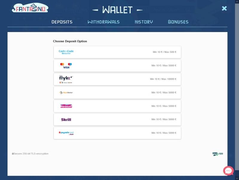 Fantasino 的銀行系統非常完善,接受 Visa、MasterCard、Skrill、Neteller、GiroPay、Trustly、Zimpler、ecoPayz、EnterCash 和 Euteller 等付款方式。賭場設有 24 小時的獎金待處理期,但之後獎金很快就會支付。這裡有很多值得稱道的地方,您可以放心,賭場會定期支付獎金。