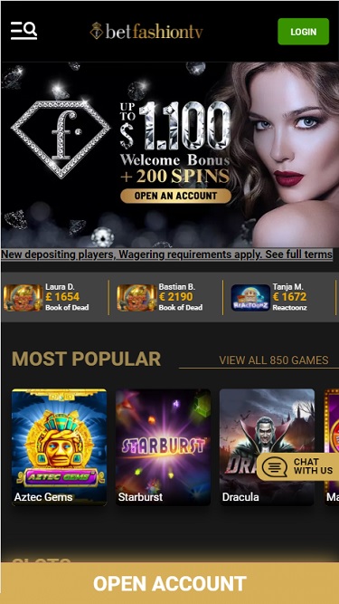 FashionTV 賭場由 Amaya, Microgaming, Net Entertainment, BetSoft, Barcrest, Big Time Gaming, EYECON, iSoftBet, Oryx, Play'n GO, Quickspin, Rabcat, Wazdan, Realistic Games, Booming Games, Stakelogic, Pragmatic Play, Red Tiger Gaming, Spinomenal, Red Rake Gaming, Skillzzgaming, Fantasma Games, Skywind, Triple Edge Studios, Northern Lights Gaming, Stormcraft Studios, Electric Elephant Games, All41 Studios, Gluck Games, NetGame Entertainment, Gameburger Studios, Pulse 8 Studios, Neon Valley Studios, SpinPlay Games, Real Dealer Studios, GONG Gaming, Buck Stakes Entertainment, Games Global, Wizard Games, 2by2 Gaming, Ainsworth, bluberi, Blueprint Gaming, Pariplay, Inspired Gaming, Cayetano, Gamomat, CORE Gaming, Reel Time Gaming, betiXon, Bally Wulff, Iron Dog Studio, Foxium, Just For The Win, PearFiction Studios, Wild Streak Gaming, Slingshot Studios, Fortune Factory Studios, RubyPlay, Gamevy, Crazy Tooth Studio, ReelPlay, Alchemy Gaming, Snowborn Games, Hacksaw Gaming, Max Win Gaming, Gold Coin Studios, Half Pixel Studios, Slotmill, Aurum Signature Studios, Lucksome Gaming, Area Vegas, Leap Gaming, Wishbone Games, Spribe and HammerTime Games提供支持,該平台透過網頁平台提供遊戲,您可以透過網路瀏覽器存取。該賭場還提供行動端賭場,方便您透過智慧型手機和平板電腦進行遊戲。Slots