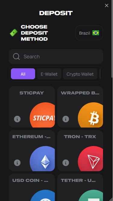 瀏覽主頁,玩家還可以查看所有可用的付款方式、提供的促銷活動、推薦計劃以及可以參與的會員計劃。該品牌在網站左上角設有一個可擴展菜單,方便玩家詳細查看所有娛樂選項。在這裡,您可以訪問自己喜歡的遊戲和體育博彩版。此外,玩家還可以造訪負責任博彩、客戶支援和常見問題頁面。