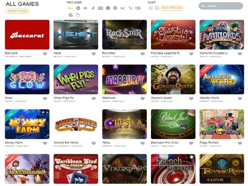 Net Entertainment, BetSoft, 1x2gaming, Evolution Gaming, Ezugi, iSoftBet, Oryx, GameArt, Pragmatic Play, Games Global, NextGen, Intervision Gaming and HollywoodTV提供支持,其賭場遊戲透過基於網頁的即時遊戲平台提供。此外,我們也提供行動網站,方便隨時隨地暢玩。