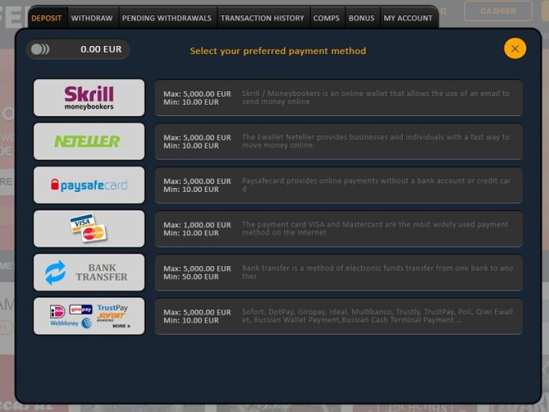 €30 (E-wallets)/€50 (Credit/Debit Cards/Bank Transfer)