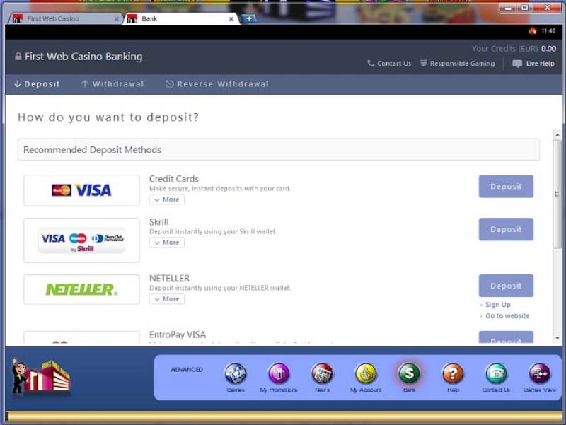 First Web Casino 由 Microgaming and Games Global提供支持,賭場擁有數百款遊戲庫。您可以透過一款可下載的軟體造訪賭場,該軟體會將遊戲直接上傳到您的電腦。Baccarat