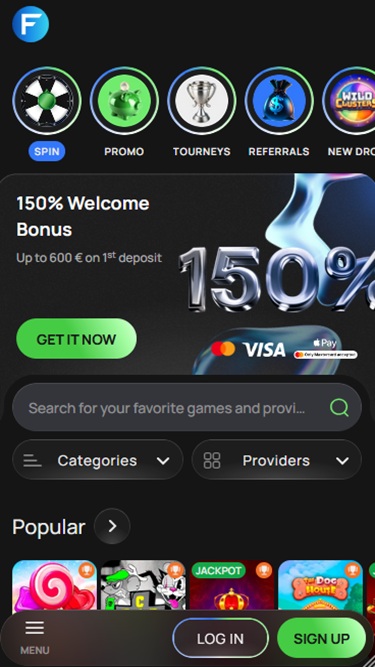 Flagman Casino 成立於 2024 年底,憑藉其為玩家提供的大量娛樂選項和遊戲,包括真錢老虎機、真人荷官、桌面遊戲、速成遊戲和體育博彩,一躍成為線上博彩行業的領導者企業。憑藉其豐富的促銷計劃和加密貨幣支持,我們堅信該品牌將繼續吸引玩家訪問其博彩網站。