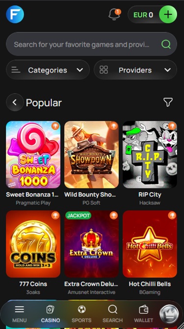說到遊戲和娛樂,顯而易見的是,這家賭場傾注了大量心血,為玩家提供豐富的博彩活動。這裡有成千上萬的線上老虎機、真人荷官、速成遊戲和桌上遊戲供玩家探索,每個遊戲類型都包含眾多子類別和變體。