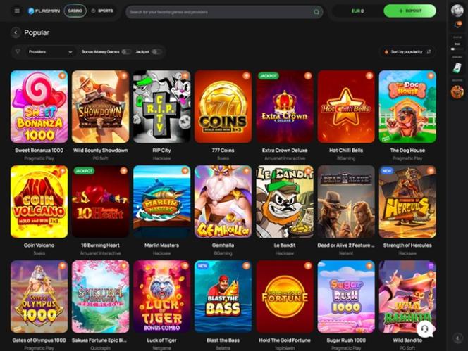 例如,Flagman Casino 可能是您的完美選擇。這個賭博網站提供由超過 110 家軟體供應商開發的遊戲,數量可觀。這裡有數千款遊戲,每款遊戲都有獨特的機制、功能和主題,值得探索。