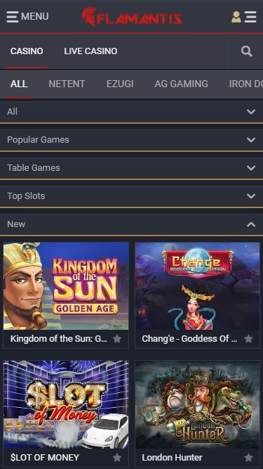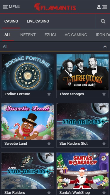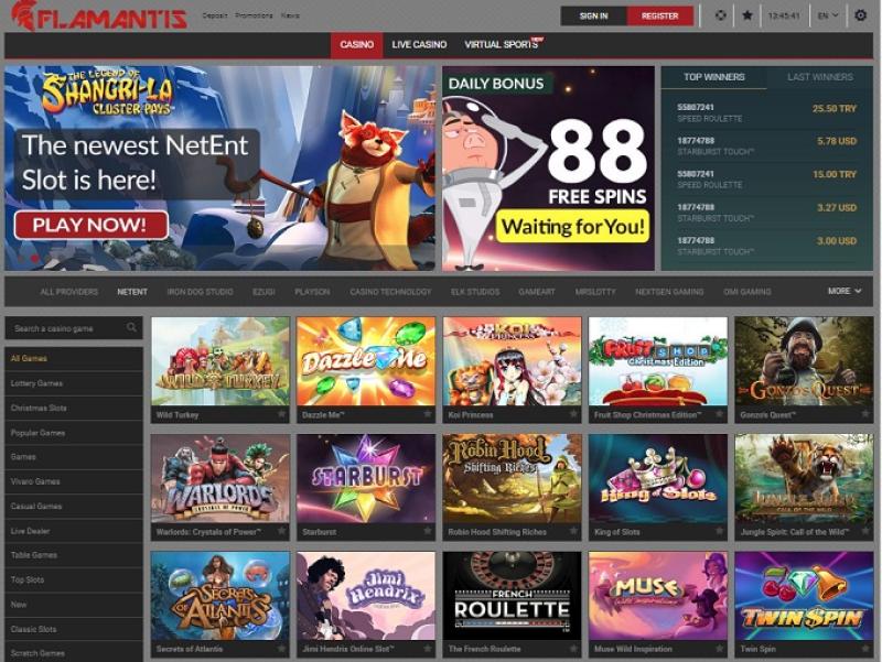 Flamantis 賭場提供眾多老虎機遊戲,包括 Net Ent 和 Betsoft 的遊戲。玩家可以在 Flamantis 找到許多 3D 老虎機、視訊老虎機和一些經典遊戲,此外還有一些高額累積獎金。