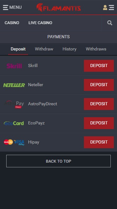 Banking銀⾏業務選項 的 Flamantis Casino