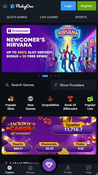 幸運的是,這個賭博品牌做出了明智的選擇,與 FlukyOne Casino 合作的公司總數超過一百家,其中包括知名公司和成功加入 iGaming 領域的新工作室,提供創新的遊戲概念和新鮮的線上賭博理念。