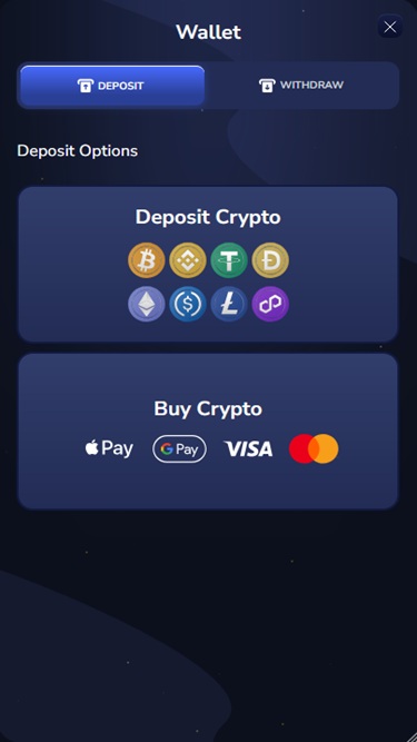 此線上賭場品牌提供的加密銀行服務確保交易快速。尚未切換至加密選項的玩家仍然可以使用流行的借記卡和信用卡,以及廣泛使用的電子錢包。