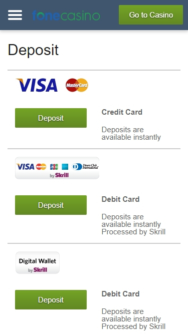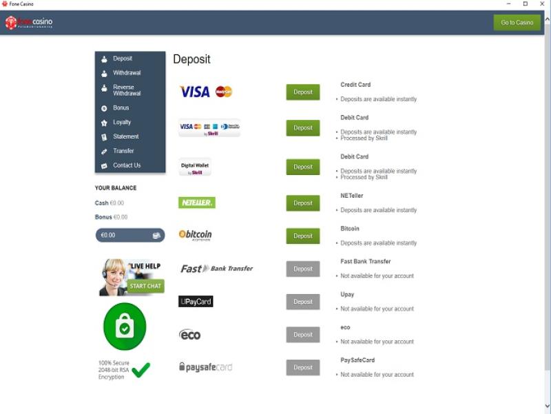 Fonecasino 由 BetSoft, Rival and Saucify提供支持,其遊戲透過網頁平台和可下載的軟體提供。該賭場還為想要在智慧型手機或平板電腦上玩遊戲的玩家提供行動網站。
