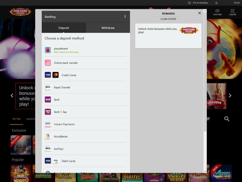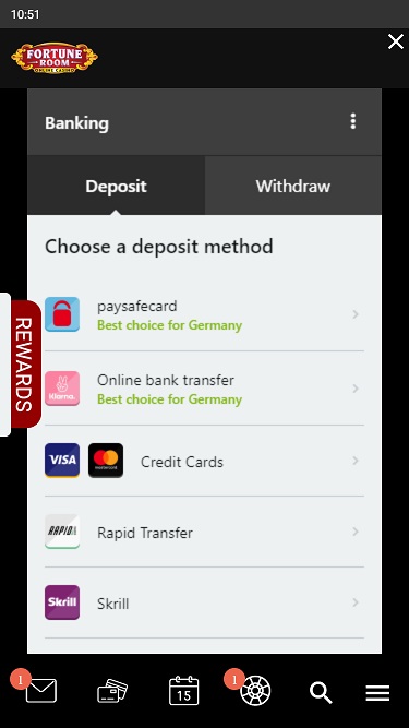 Fortune Room Casino 由 Microgaming, Net Entertainment, Evolution Gaming, Triple Edge Studios, Stormcraft Studios, Switch Studios, Pulse 8 Studios, Games Global, Just For The Win and Fortune Factory Studios提供支持,提供海量遊戲,可透過網頁平台和可下載的軟體暢玩。此外,它還提供行動網站,方便您在旅途中使用智慧型手機或平板電腦暢玩。