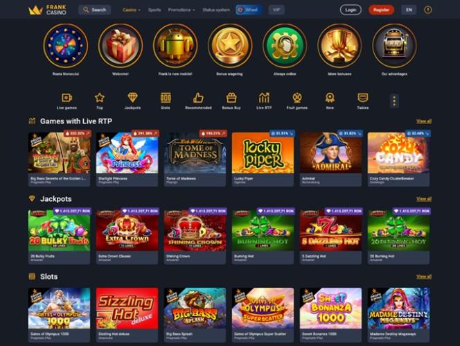 Frank Casino 是一個線上博弈網站,由 Pomadorro NV 於 2016 年創立。這家賭場在庫拉索島運營,並在歐洲各地提供服務,提供來自知名開發商的遊戲。賭場每週僅處理三次派彩,而且獎金的下注要求相當高,這兩點都阻礙了 Frank Casino 成為一個理想的博彩場所。