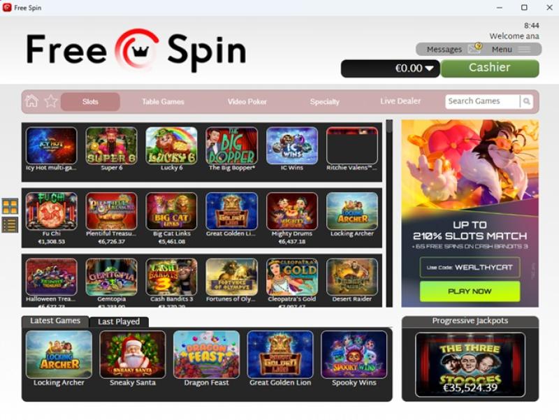 Free Spin Casino 提供數十款老虎機遊戲,其中絕大多數是視訊老虎機,但也包含少量經典遊戲。 Free Spin Casino 還提供累積獎金,高達數百萬美元的獎金等您來贏取。