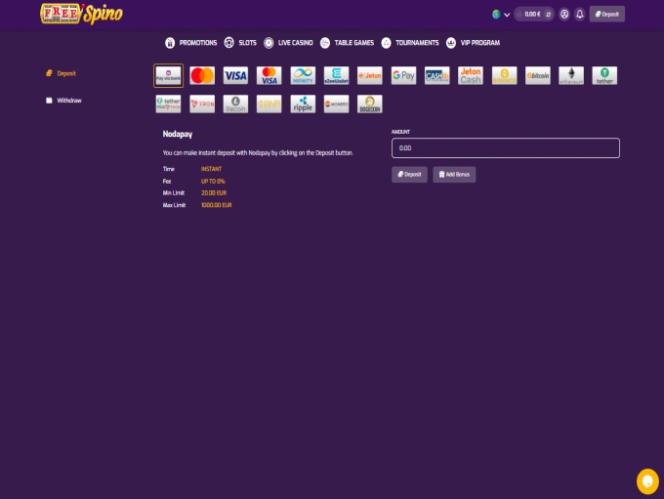 吸引大量玩家並非僅僅透過在遊戲庫中增加大量遊戲就能實現。賭場還可以透過允許玩家使用多種支付方式來擴大受眾群體,而這正是 Free Spino Casino 所做的。