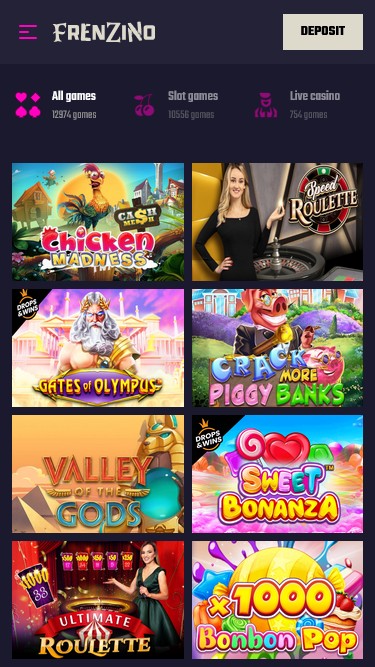 該平台為玩家提供數千款賭場遊戲。更重要的是,這些遊戲都是出自業界知名的遊戲開發商之手,例如Endorphina 、Quickspin 和 Pragmatic Play。以下是其他您在 Frenzino 賭場還能找到的遊戲開發商: Net Entertainment, Playtech, BetSoft, 1x2gaming, Amatic Industries, Espresso Games, Evolution Gaming, Ezugi, Habanero Systems, Novomatic, Play'n GO, playson, Quickspin, Relax Gaming, Rival, Thunderkick, Vivo Gaming, Yggdrasil, Endorphina, Wazdan, GameArt, Betgames, Booming Games, Gameplay Interactive, Pragmatic Play, Nolimit City, Red Tiger Gaming, ZEUS Services, Booongo, LuckyStreak, Spinomenal, Red Rake Gaming, Inbet Games, Xprogaming, Belatra Games, Kalamba, Platipus Gaming, Nucleus Gaming, Skywind, Spinmatic, Spadegaming, BGAMING, Concept Gaming, Evoplay, OneTouch, Pocket Games Soft, Triple PG, Bulletproof Games, Gluck Games, Mascot Gaming, TVBet, Slot Factory, Spearhead Studios, ThunderSpin, Mancala Gaming, Expanse Studios, 7Mojos, HungryBear Gaming, SmartSoft Gaming, KA Gaming, PureRNG, Holle Games, Caleta Gaming, Eurasian Gaming, Reevo, Amusnet Interactive, Ash Gaming, CT Interactive, EveryMatrix, Greentube, Media Live, Push Gaming, Tom Horn Gaming, Wager Gaming, Mr Slotty, BF Games, Reflex Gaming, Apollo Games, Wild Streak Gaming, RubyPlay, 4ThePlayer, AvatarUX, Gamevy, ReelPlay, SlotVision, Rarestone Gaming, Indi Slots, Boomerang Studios, Hacksaw Gaming, Bang Bang Games, Copacabana Gaming, Gamzix, Triple Cherry, Dragon Gaming, Peter And Sons, Absolute Live Gaming, Onlyplay, Armadillo Studios, Gamebeat, Dragoon Soft, Beter, GoldenRace, Aviatrix, Kiron, TaDa Gaming, 3 Oaks Gaming, Amigo Gaming, Apparat Gaming, LiveGames, PopOK Gaming, Spribe, 1spin4win, Gaming Corps, Elbet, BetSolutions, Reel Kingdom, JVL, Popiplay, Zillion Games, ICONIC21, Dream Play, Clawbuster, Slotopia, VoltEnt, Orbital Gaming, InOut Games, Boldplay, Penguin King, Blaze Gaming, Eeze and 18Peaches 。