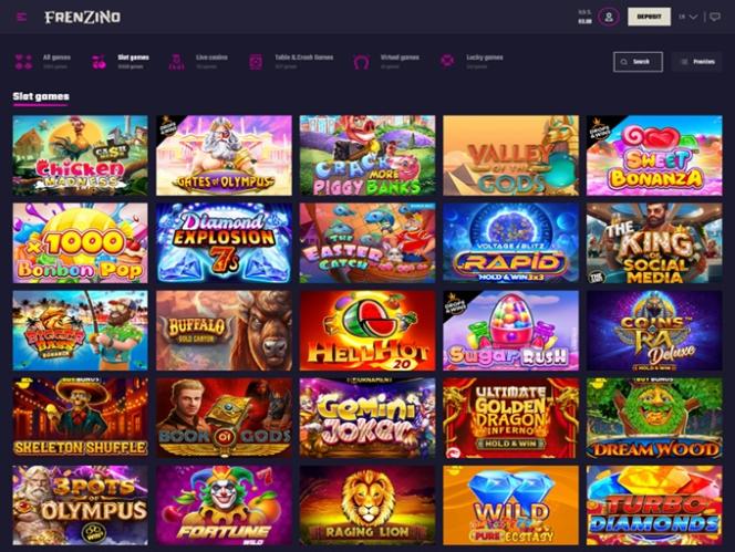 儘管賭場擁有數千種不同的遊戲,但老虎機仍然佔據了絕大多數。在 Frenzino,您將有機會體驗許多業界知名開發商的精彩作品。以下列舉幾款您將有機會體驗的遊戲: