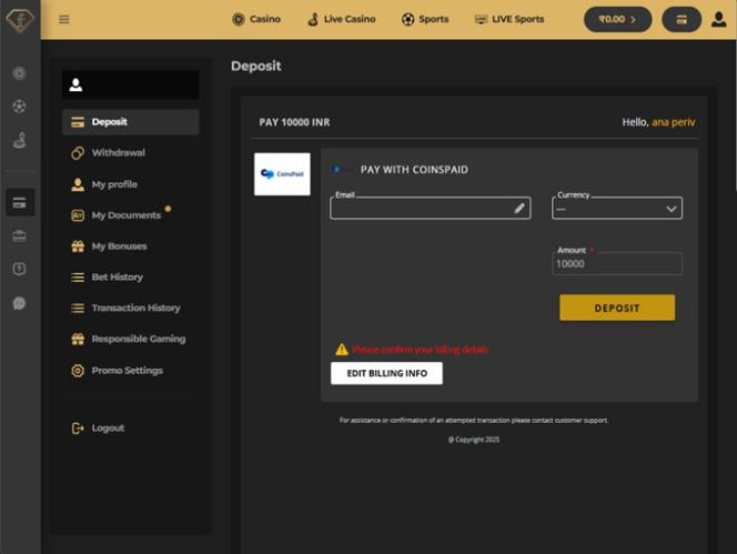 網站視覺設計採用引人注目的配色方案,以深色背景和金色調為主,無疑給人一種該品牌旨在提供奢華博彩體驗的印象。使用者介面簡潔明了,這意味著您可以輕鬆瀏覽所有版塊和頁面。
