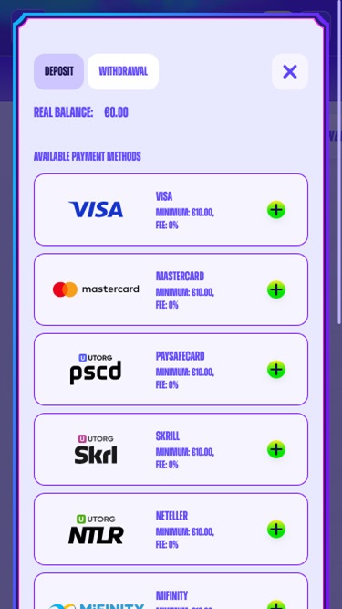 請記住,驗證流程可在十個工作天內完成,而提款請求通常在三個工作天內處理。電子錢包付款即時到賬,這對於希望快速獲得資金的玩家來說非常方便。請注意,銀行轉帳可能需要三到五個工作天才能完成。