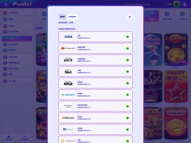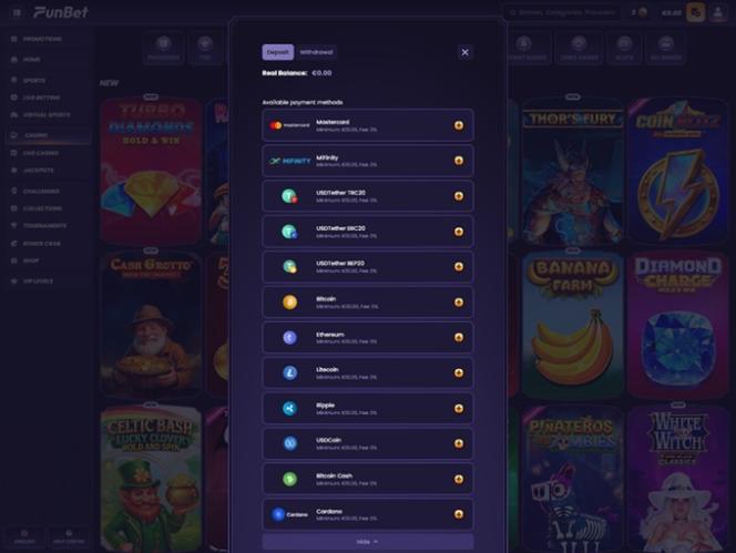 FunBet Casino 確保其會員擁有豐富的選擇,包括傳統方式和加密貨幣。無論您喜歡Revolut 、Skrill、Neteller等電子錢包或其他線上系統、金融卡和信用卡,還是使用比特幣、泰達幣、萊特幣、狗狗幣和其他熱門貨幣進行加密交易,您都能輕鬆便捷地為您的帳戶充值。
