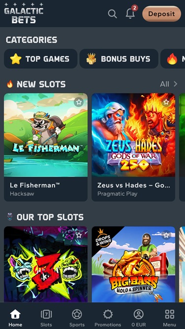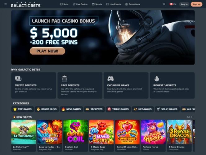 GalacticBets是一家線上賭場,提供極其豐富的賭場遊戲,包括數千款真錢老虎機、真人荷官遊戲、桌上遊戲和即時崩潰遊戲,以及龐大的體育博彩專區。該品牌還提供許多促銷活動和獎金,並誠摯邀請來自德國、奧地利、瑞士、澳洲和加拿大的玩家前來體驗!