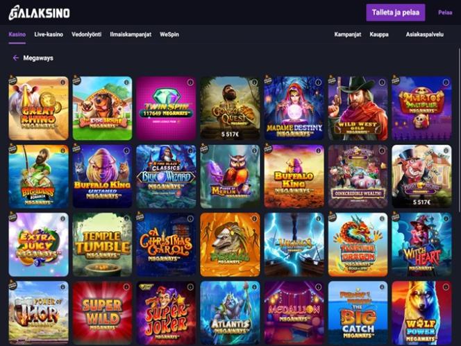 Galaksino 提供由知名 iGaming 品牌提供的賭場內容。 「老虎機遊戲」是其最主要的遊戲板塊,但其他線上賭場遊戲和遊戲類型也可透過這個設計精良的博彩平台獲得。
