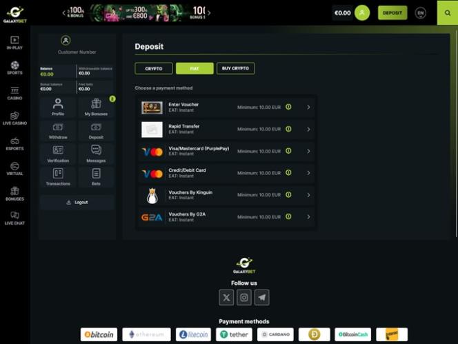 - Galaxybet Casino 有權設定帳戶的最低和最高存款金額。