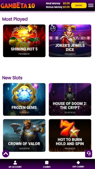 正如我們之前提到的,Gambeta10 賭場提供由一些頂級線上賭場遊戲開發商製作的遊戲。因此,玩家可以享受高品質的線上老虎機遊戲,它們擁有熱門主題、驚人的畫面、一流的音效以及誘人的獎勵和獎金功能。