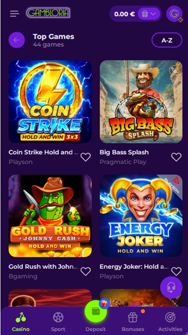 Gambloria Casino 是一個致力於為玩家提供豐富多元遊戲和活動的博彩網站。遊戲選擇包括真錢老虎機遊戲、真人荷官、桌上遊戲、速成遊戲和體育博彩。此外,該品牌還憑藉著豐厚的獎金和促銷活動廣受玩家歡迎,即使是最資深的玩家也能樂在其中。