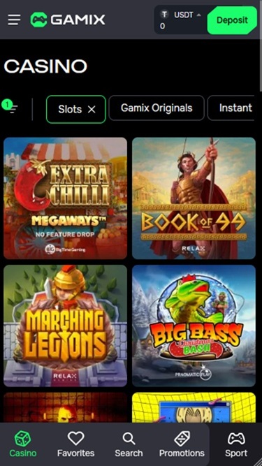 網站設計師採用了品牌標誌性的霓虹燈未來主義主題,與Gamix的現代風格完美契合。賭場將鮮明的綠色與舒緩的灰色背景相結合,營造出一個個性十足、引人注目的空間。