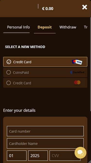 請注意,部分銀行服務並非對所有玩家開放,具體服務可用性取決於您所在的國家/地區。如需確認哪些付款方式適合您,請查看賭場的銀行服務頁面。