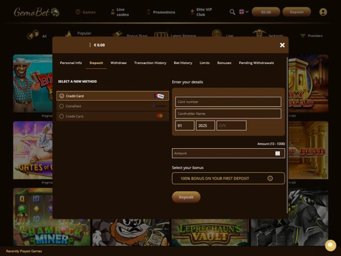 GemoBet.io 包括加密貨幣和傳統付款選項,例如支付卡、流行的電子錢包(包括Revolut) 、銀行電匯和其他線上付款選項。