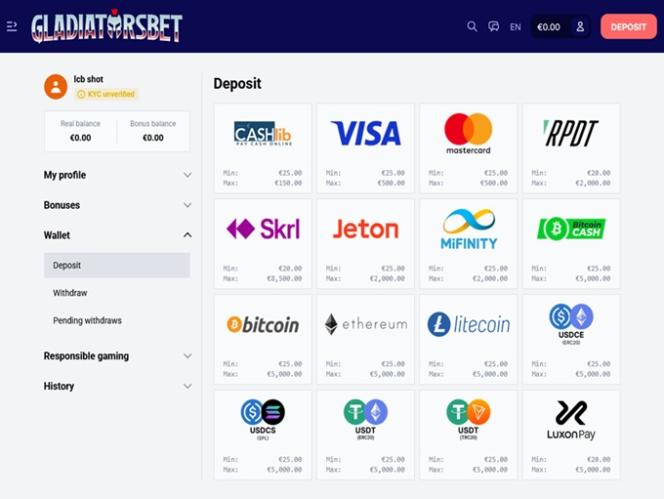如果你自認為是加密貨幣愛好者,你會很高興地知道 GladiatorsBet 在這方面也做得很好,它接受多種不同的加密貨幣,包括比特幣和萊特幣。