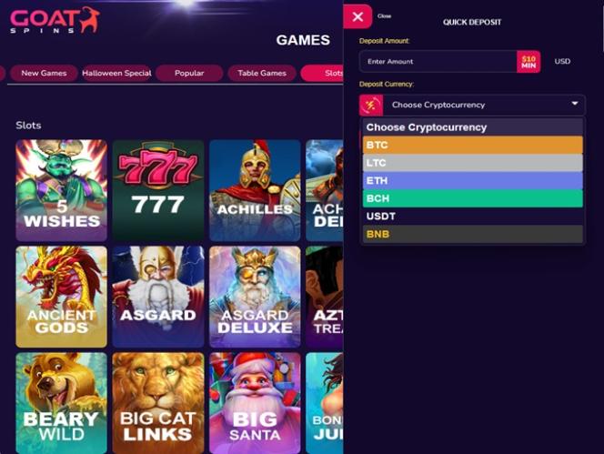 Goat Spins Casino 是一家主要針對美國玩家的加密貨幣賭場。我們訪問時,它尚未獲得博彩牌照。